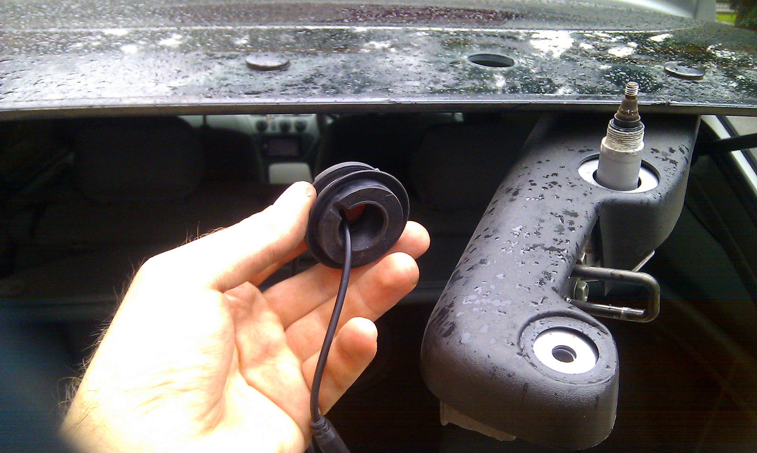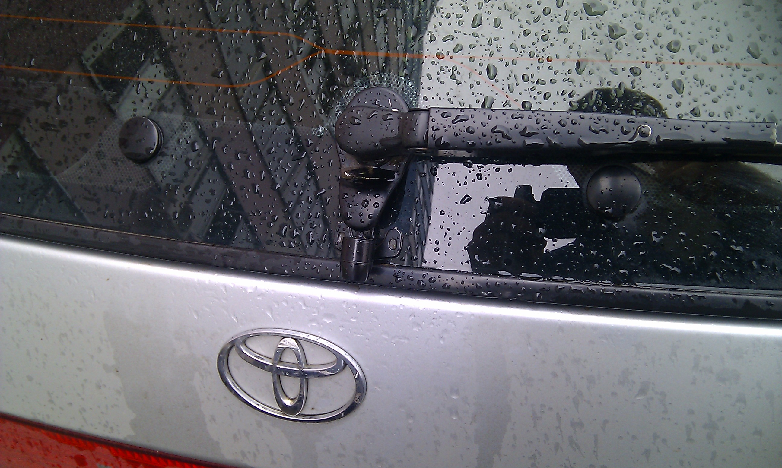 Долго вертел куда ее ставить, чтоб было не сверлить, чтоб видно было бампер и смотрелось прилично. Решил ставить под ручку заднего стекла с креплением на скотч 3М двусторонний. Чтоб пропустить кабель, разобрал механизм заднего дворника, подрезал в резинке канал совсем немного.