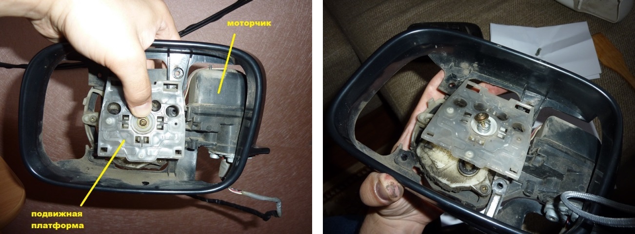Сначала не понял, как снимается фишка (чтобы надеть на механизм новый черный ободок, зеркало нужно отсоединить, иначе не пролазит). Пытался снять крышечку, откуда провода выходят, но оказалось, фишка сделана по типу "вилки". Вложение: