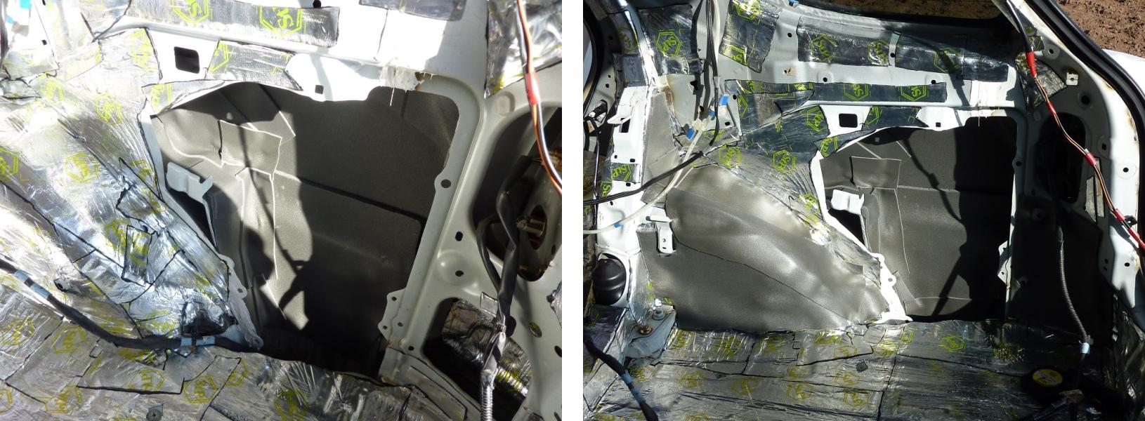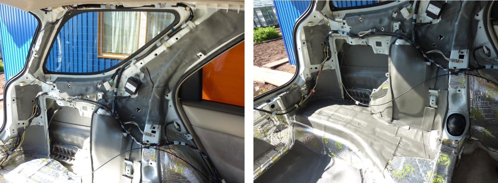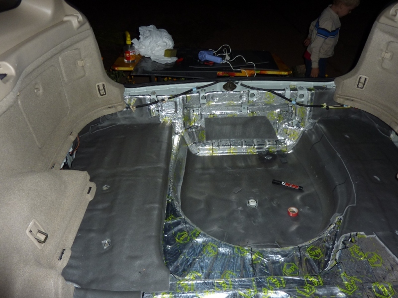 04.09.2013Наконец-то дозрел до того, чтобы сделать виброшумоизоляцию багажника. Многие универсалы страдают повышенным шумом этой части авто. Мой не стал исключением. Не знаю, чего я ждал все лето, но, когда оно кончилось, я понял, что надо срочно заняться багажником.  Дождался, пока на ЯндексПогода появится пару теплых солнечных дней, подменился на работе и поехал на дачу. День первый. Разобрал багажник, отмыл его и обезжирил. И понеслось!  На часах было 14.00 и настроение пока было боевым.  Вложение:
