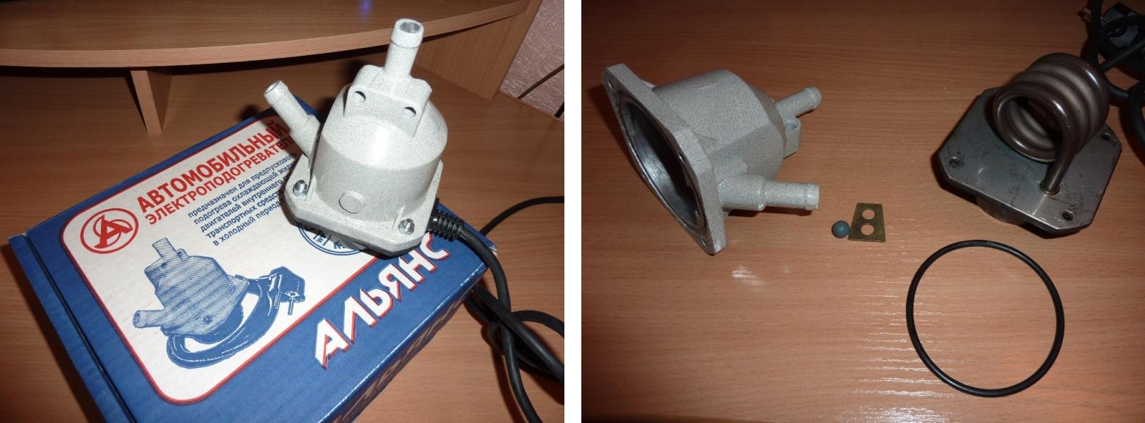 29.09.2013На выходном поставил котел. Сначала думал отдать в сервис, но потом решил поручить это ответственное задание самому себе.  Да и отдавать две тысячи не очень хотелось. Тем более не был уверен, что сделают на совесть. Котел взял Альянс (г.Тюмень) за 1800 р.. Мощность... Продавец сказал 1,5 кВт, на коробке написано 1,5-2 кВт, на самом котле 2 кВт.  Если кто соберется ставить подобный подогреватель, то помимо самого котла с установочным комплектом, нужно будет докупить: - герметик высокотемпературный (красный) - антифриз на доливку (1,5 л) - шланг армированный (внутр. диаметр 14, длина 1 метр) - пистоны для пластиковой защиты двигателя (по-любому сломаются при снятии), можно позже поставить - гибкий шланг (сливать антифриз, длина 1-1,5 м, внутр. диаметр примерно 8 мм) - 5-литровую пластиковую канистру - болт 8х100, болт 10х100, болт 8х20 (а лучше 8х15, если такие бывают) с шайбами (широкими и стопорными) и гайками - хомуты для шлангов фирмы Norma (для подбора размеров взять хомуты из коробки), по желанию - хомуты пластиковые (а лучше резиновые), для крепления электропровода подогревателя Ну и будет очень кстати подобный набор: Вложение:
