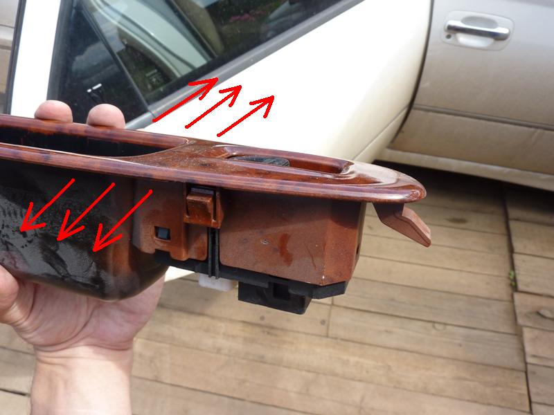 Чтобы вытащить ручку без повреждений защелок, нужно чуть приподнять, насколько получится, заднюю часть ручки (по ходу автомобиля), просунуть туда маленькую отверточку и подогнуть (прижать к корпусу) металлическую защелку. Примерно как на фото. Причем отвертку я так и вставлял, сбоку. Вложение: