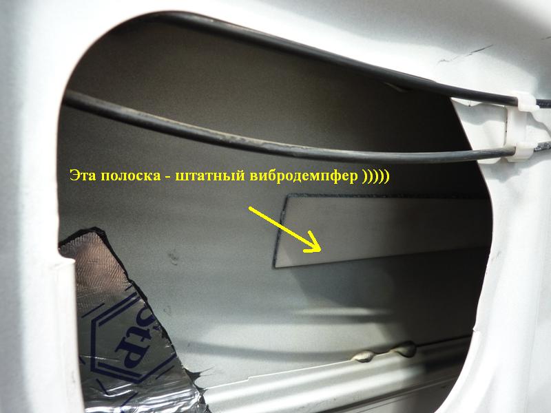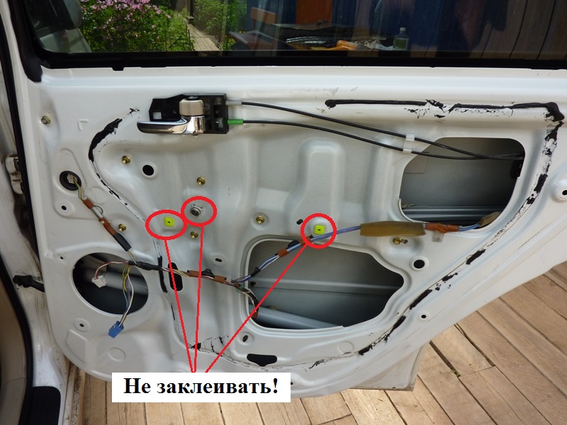 Отверстия от металлической "ручки" заклеивать не надо. Также как и стержень (или как его там) механизма стеклоподъемника. На одной из дверей этот стержень я все-таки заклеил, но то был битопласт и на открывании-закрывании окна это никак не сказалось. А вот вибропласт или сплэн на него лучше не клеить. Вложение: