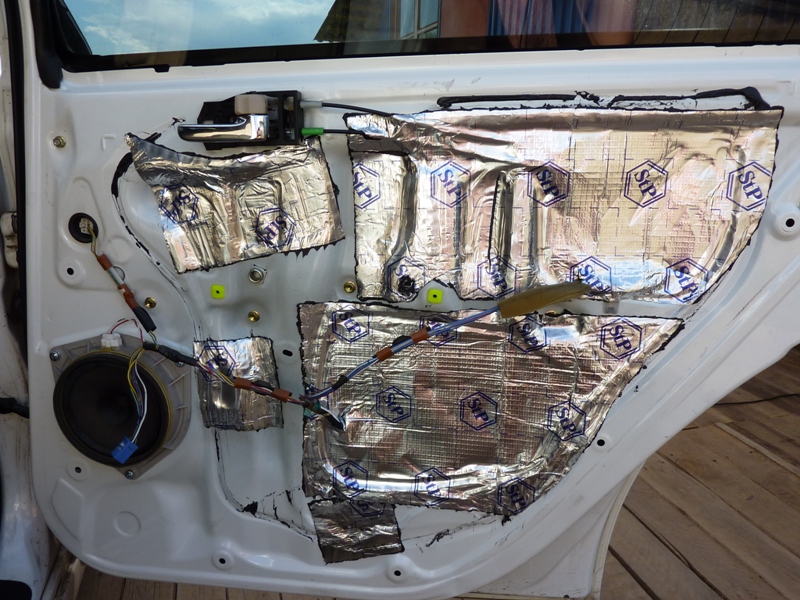 Теперь вот какой момент. Как сказано в вышеуказанной статье, сплэн долгое время считали шумоизолятором. Когда-то так и было. На самом же деле у него больше теплоизоляционных свойств, чем шумоизолирующих. Звук он только отражает, но не в такой мере как современные материалы - акцент и битопласт. Те, за счет своей структуры, его еще и поглощают. Поэтому в качестве шумоизоляции при обработки дверей (да и вообще автомобиля в целом) STP рекомендует использовать именно их. Но так как моя виста живет в Сибири, я решил не отказываться от теплоизоляции. Следующий слой - сплэн. Вложение: