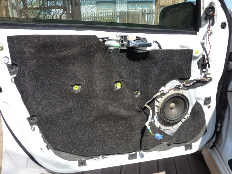 На этом всё. Когда мастика высохнет, бежим, спотыкаясь, ставить карту на дверь. Главное - не забыть запастись пистонами.  Итог: качество музыки явно улучшилось. В основном, за счет того, что дверь теперь не дребезжит. Раньше некоторые песни я просто не мог слушать из-за их частотных особенностей. Сейчас играет всё. Даже бас стал чуть глубже, насколько это возможно на штатной магнитоле (у меня Yatour). Если скачивать треки в хорошем качестве (не ниже 320 кбит/сек), то играет вполне достойно. А двери теперь вообще не слышно. Вообще. Никак. Их просто нет.