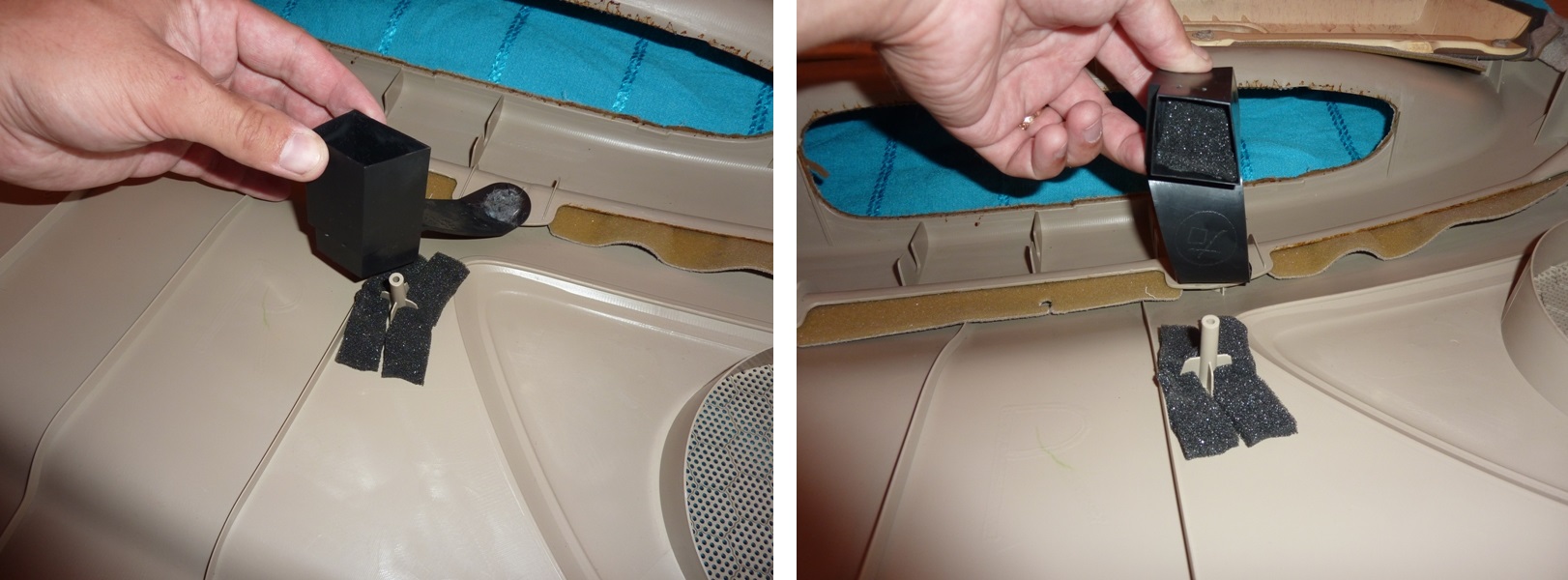 Идем дальше. Под дребезжащий электрический блок подсовываем поролон. Плотнее. Столько, сколько влезет. Потом полосками бипласта фиксируем его, чтобы не вылез. Вложение: