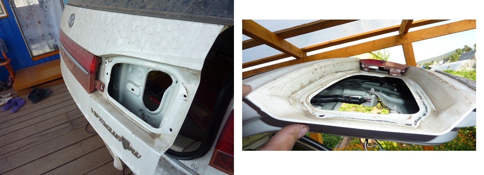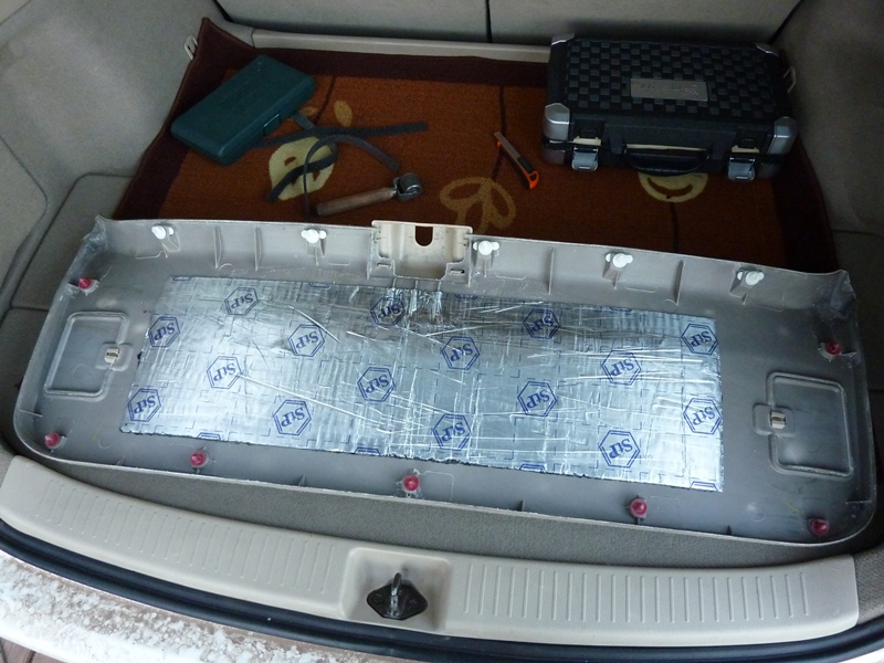 Ставим накладки на место. Перед этим очень рекомендую поменять все красные пистоны на новые (в магазинах есть точно такие же) - несколько штук внизу, возможно, будут плохо держать и постоянно выскакивать. На этом с дверью багажника покончено. Постучите теперь по двери и сравните с тем, что было. Ну как?