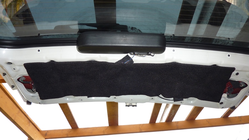 Виброшумоизоляция двери багажника. Одно из самых проблемных мест в ардео, поэтому будем шумить. Перед тем как начать, приоткройте наполовину дверь багажника и ударьте по ней кулаком. Этот набор звуков не описать! Запомните его. Теперь вперед. Снимаем пластмассовые накладки вокруг стекла (они на пистонах). Сначала боковые, потом вверху стекла. Затем снимаем накладку самой двери. Дергаем ее снизу, т.к. внизу обычные пистоны (вверху в виде крючков). Вот она - звуковая шкатулка! Вложение: