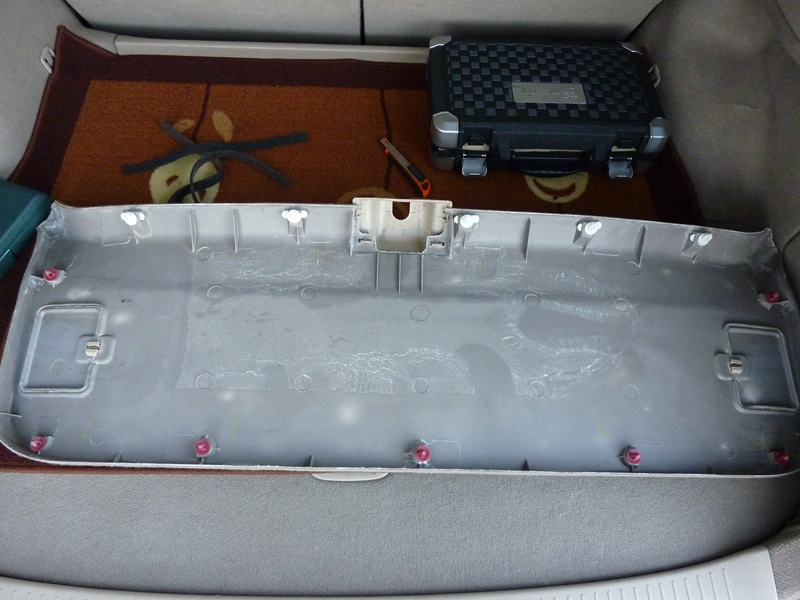 Наклеиваем лист битопласта 10мм (и шумоизоляция и проводка трястись не будет). Оставляем небольшие отверстия для замены лампочек в фонарях. Вложение:
