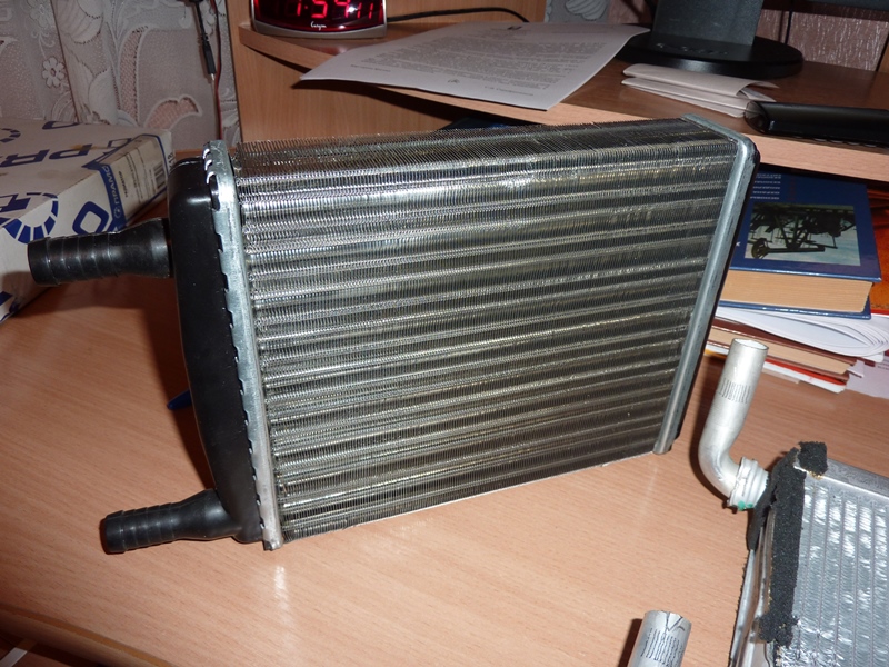 Я бы добавил еще, что стамески (ну или стамеска, если будете работать одной) должны быть острыми. А лучше новыми. Некоторые форумчане предлагают для более аккуратной срезки внутренних полозьев (о также чтобы не наделать дыр в корпусе печки) использовать длинный паяльник с острым жалом. Итак, берем радиатор от ипсума. Можно как от 21-го кузова, так и от 26-го.