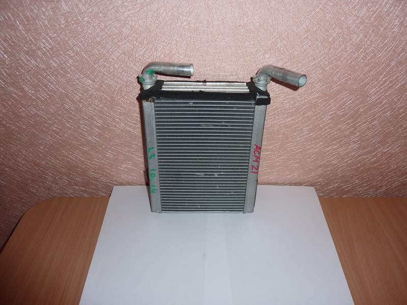 30.10.2014Замена радиатора печки.В конце октября решил поставить вместо штатного отопителя радиатор от ипсума (21, 26 кузов). Сначала хотел просто промыть родной радиатор без снятия, но, воодушевившись результатом Serj55ru (это, кстати, ему принадлежит авторство по внедрению радиатора от ипсума вместо штатного), решил кардинально модернизировать печку. Тем более, что опыт по замене радиаторов печки у меня, можно сказать, богатый. Правда, не без неудач. Первый раз я решил поменять печку еще на прежней ардейке. Пока развальцовывал патрубки радиатора, изодрал в хлам весь алюминий. При подключении после промывки радиатор, естественно, потек. Ну ладно, первый блин, как говорится, комом. Пришлось опять снимать. Ставить на этот раз решил что-нибудь потолще. В итоге выбрал радиатор от 120-й короллы, шириной 2,7 см (родной был 2 см). Чтобы не возиться с развальцовкой-завальцовкой, решил ставить радиатор на шланги. А для надежности, думаю, надо бы вальцы заварить. И отдал радиатор на сварку аргоном. Для установки более широкого радиатора требуется доработка корпуса печки - расширить входное отверстие и срезать внутренние планки. Более-менее успешно я всё это проделал. Возни было не так много, потому что доработать корпус нужно было только с одной стороны радиатора. Но вот когда я установил радиатор, горю моему не было предела - он тоже потек, причем, как позже выяснилось, в месте сварки. Сволочь сварочная!  Мало того, что радиатор испортил, так еще, когда я за ним шел, чтобы забрать, мне на гаражах местная собака куртку порвала. Вообще, если кому интересно, все мои отчеты о первой радиаторной любви можно найти в теме Снятие, чистка и дезинфекция радиатора печки, и кондиционера. Так как радиатор еле подкапывал, то и трогать его до лета я не стал, а по весне так и продал машину. Вот такая вот предыстория. Итак, решено ставить радиатор от ипсума - максимальный по размерам, который только можно впихнуть в корпус печки на 50-й висте. Думаете, все пошло гладко? Как бы не так! Меня стали преследовать призраки прошлого. Покупаю, значит, радиатор от ипсума. Распиливаю алюминиевые трубки, сливаю антифриз, вырезаю (расширяю) отверстие в корпусе печки, срезаю внутренние полозья и пытаюсь впихнуть радиатор. А он, сволочь такая, не лезет!  Пока я его тудой-сюдой дергал, замял тонкие металлические пластинки между сотами радиатора, что уже бы снизило мощность проходящего потока воздуха. Через какое-то время радиатор вошел на две трети, но дальше ни в какую. Кое-как его вытащил и обалдел - три соты с левой стороны радиатора (той, что я не вижу, когда его вставляю) порваны!  Радиатор испорчен. Прошлое прям дыхнуло в лицо неприятным запашком. Как я потом выяснил, соты были порваны отпиленной металлической трубкой, той, что соединялась с выходным (верхним) патрубком радиатора. Надо было отвести ее вверх. Я этого не сделал, не увидел просто, и в итоге она порвала соты. Собственно она-то и не давала вставить до конца радиатор. Ну, думаю, видно не судьба. И покупаю радиатор от газели... Алюминиевый... Вложение: