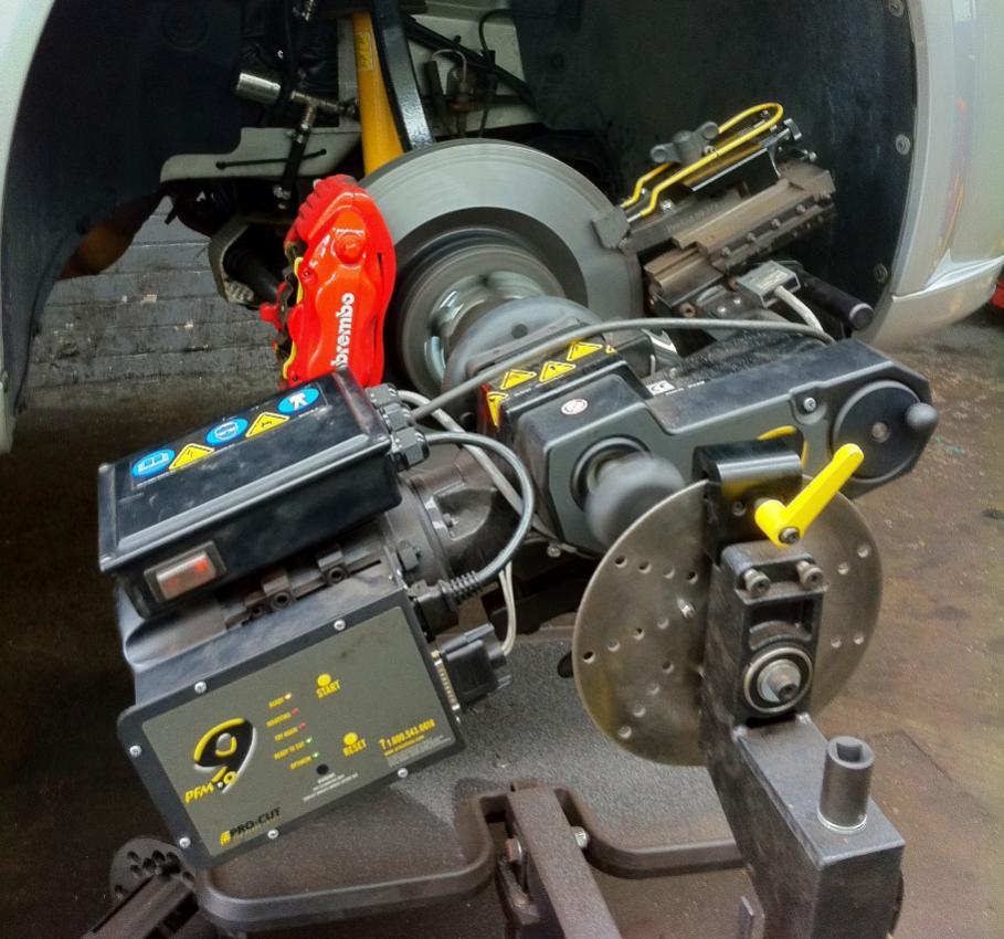 13.08.2015Дааа, давненько я тут ничего не писывал. А все потому, что ни зимой ни весной с машиной ничего интересного не случалось. Вообще. Всё работает как часы, даже скучно порой бывает. Но вот уже и лето, а лето - это сезон для "надо бы что-нибудь с машиной поделать".  Первым делом избавился от этого проклятого котла. Правы были те, кто говорил, что они текут. По началу-то все было нормально, но потом котел начал подтекать. Также начали подтекать и соединения шлангов. При этом уровень ОЖ не уходил, так как в нерабочем состоянии котел и шланги просто были мокрыми. Но стоило включить подогрев и через некоторое время становилось видно, что из подогревателя капля за каплей начинает давить антифриз. С учетом того, что за последние две зимы реальная потребность включить котел случалась всего пару раз, я решил его снять. Уж больно надоело это сырое порно под капотом. Процесс снятия подогревателя гораздо проще, чем его установка. Нужно только выкрутить из двигателя штуцер и поставить на место родной краник, да заменить разрезанный шланг системы охлаждения на целый. Ну и собственно открутить котел со шлангами. Краник был в свое время заботливо сохранен, а шланг я купил у одного хорошего человека на форуме. Всё! Теперь под капотом штатный вид. И ничего нигде не бежит.  Ну а на случай холодных зимних дней на сиге есть замечательная функция - подогрев по температуре двигателя. В декабре, когда увидел, что котел давит антифриз, поставил на брелке температуру двигателя -15 и с тех пор перестал думать об утреннем запуске. К слову надо сказать, что машина у меня и в -32 заводится без подогрева (пару раз приходилось заводить), но понятно, что делать так не стоит. * * * * * * * * * * * Следующим не менее приятным моментом стала проточка тормозных дисков. Причина все та же - биение руля при торможении. Уж очень это надоело. Диски точили системой PRO-CUT. Интересная штуковина. Подкатывают к ступице диковинный аппарат, цепляют на диск точилку и вперед. А ты стоишь, смотришь и душой радуешься. Вложение: