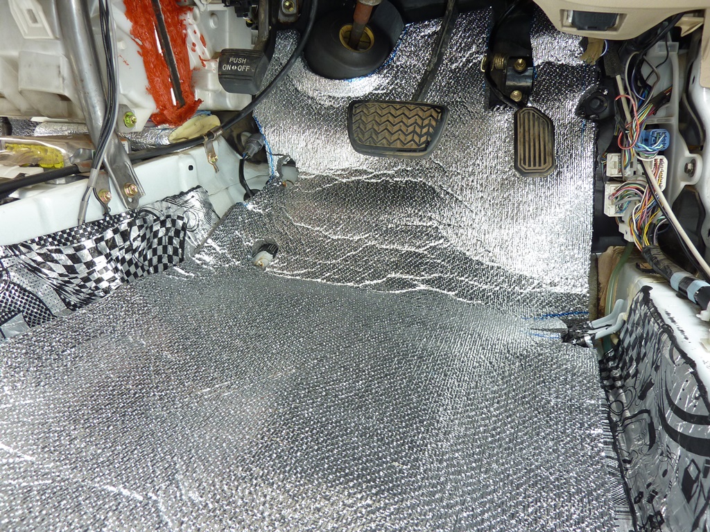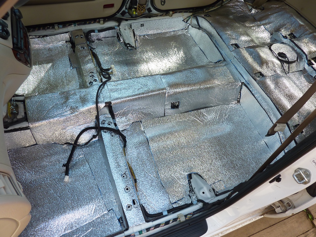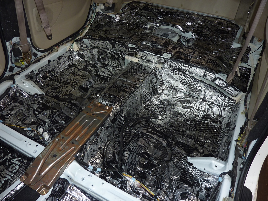 Переходим ко второму слою - шумоизоляции. Я использовал Акцент. На самый низ (под ноги) 15 мм, на другие места 10 мм. Но на самом деле, толще 10 мм лучше не клеить. А тем, у кого дорестайл, советую ограничиться вообще пятью миллиметрами. Вложение: