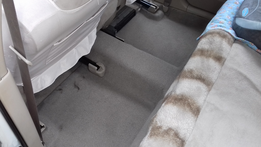 31.05.2018Замена заднего ковролина.Эту висту я купил в тринадцатом году. Ковер под ногами задних пассажиров уже был порван. Всё собирался заказать контрактный, но как-то не складывалось. А тут одному из продавцов на форуме (Илья, привет!) пришел очередной распил, как раз со светлым салоном. Ну я и купил. Одна деталь: у меня рестайл, а ковер от дорестайла. Я знал, что на дорестайлах ковролин прочнее ввиду своей конструкции, но не знал, что немного отличается по форме. Итак, вот такой был у меня пол.  Вложение: