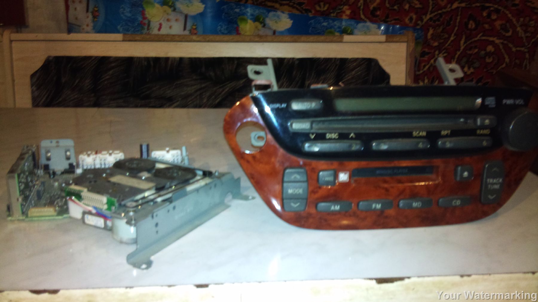 магнитафон рабочий на 6 дисков , рядом запчастья от рабочей магнитолы от касетной