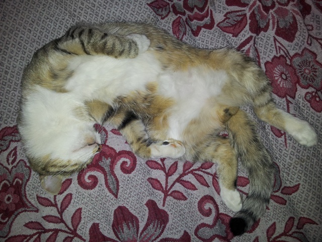 Вот Мурзик, особа не рос. Любит спать вот так :D