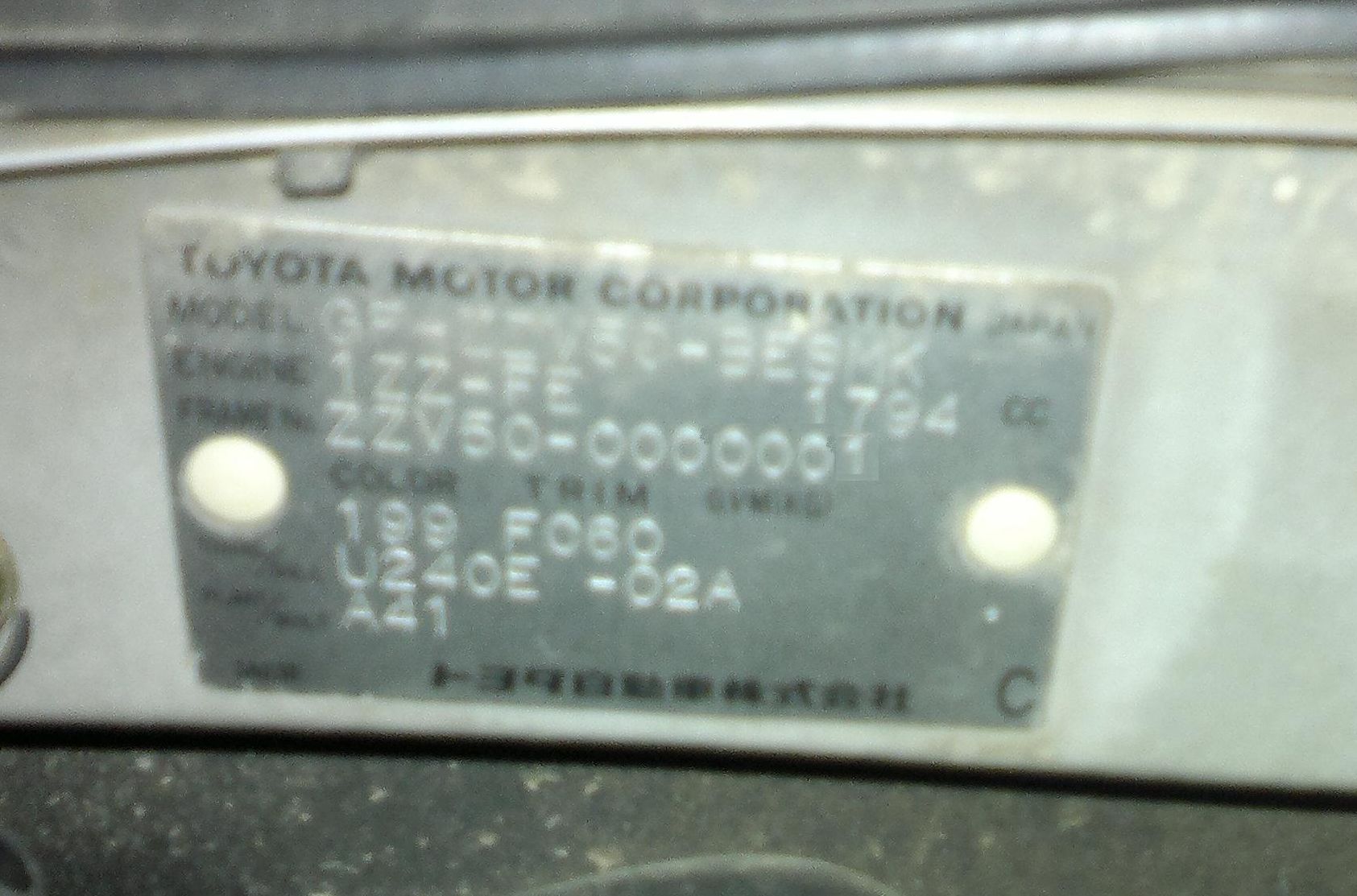 ZZV50G-BWSMK, 1ZZ-FE, 1999г