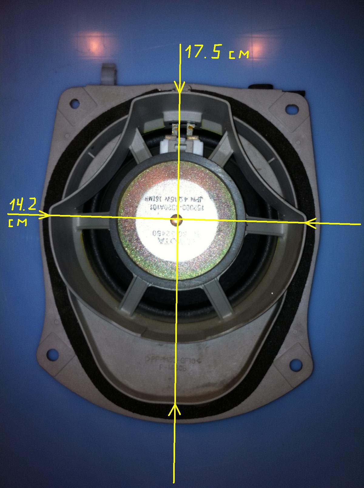 Вообще отверстие в самой двери (задней) под динамик 13-го радиуса но так как у меня новые динамики 16-го радиуса мне пришлось новый подиум делать! В принципе я могу сфотать старый динамик задней стороной он как раз плотно в отверстие входит, ну и заодно диаметр замерю, но это я смогу сделать только вечером. У вас время терпит?