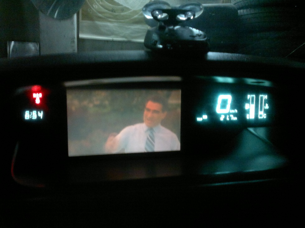 и с помощью них подключил провод видео, который протянул по правому кабель каналу до магнитолы. После включения магнитолы включаем штатную магнитолу нажав на кнопочку TV 1/2 и вуаля наслаждаемся просмотром видео на щитке приборов
