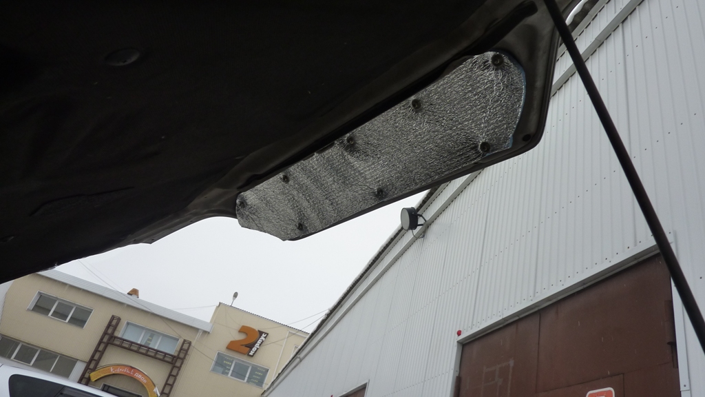 А вот что можно сделать перед тем как полностью натягивать изолон на капот: