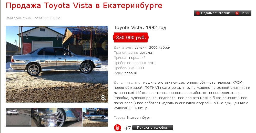 Зарегистрирован: 31 мар 2012, 19:47 Сообщения: 275 Тем: 29 Откуда: Пенза Машина: Toyota Vista О машине: sv30 90г. Репутация: 4 |