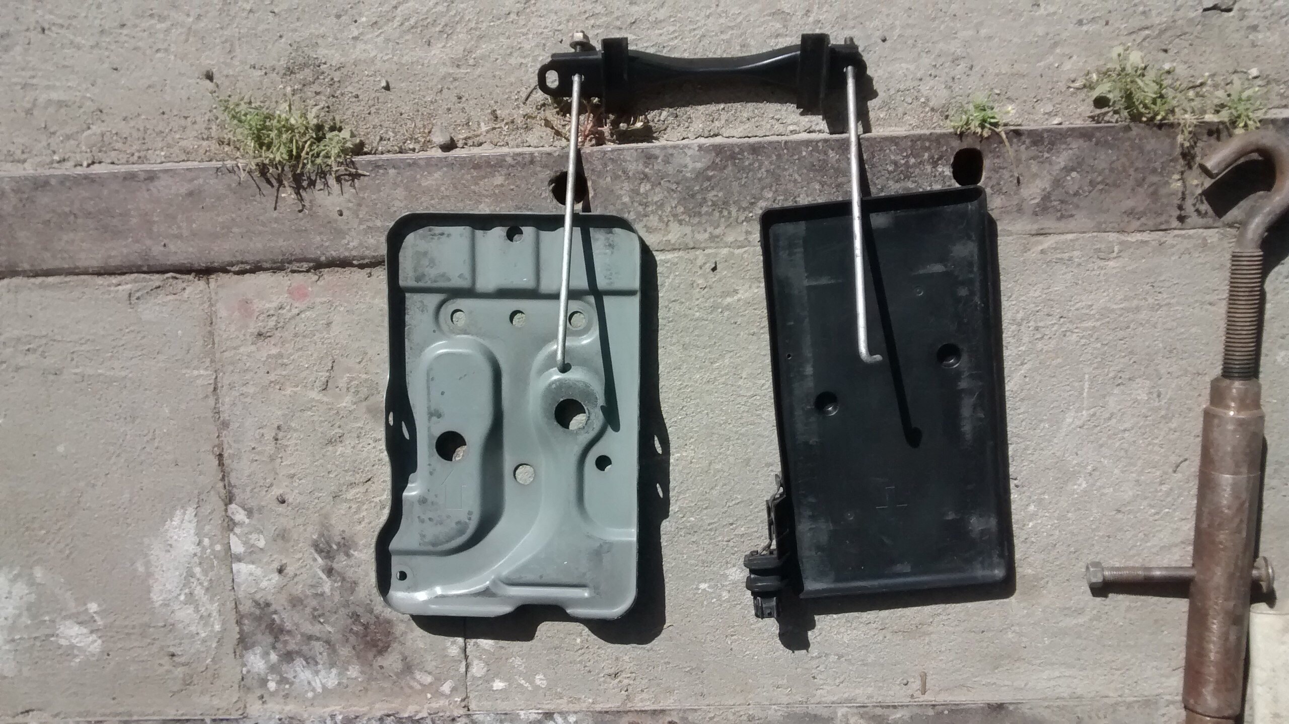 Эх зафотать надо,общем с миру по нитке спасибо местным вистоводам нашли мне крепежи штатные гайки я уже спер на работе с шайбами,планку сделал из уголка а он красивый такой,хромовый,блестящий и крепкий,просверлил отверстия род крепления,снял аккум,снял площадку,выгнул ее, болгарской пропилы сделал чтобы прямо выгнулась,поставил всё на место,закрепил,щас и гламурно и намертво,круче чем на заводе,колхозом почти не пахнет!