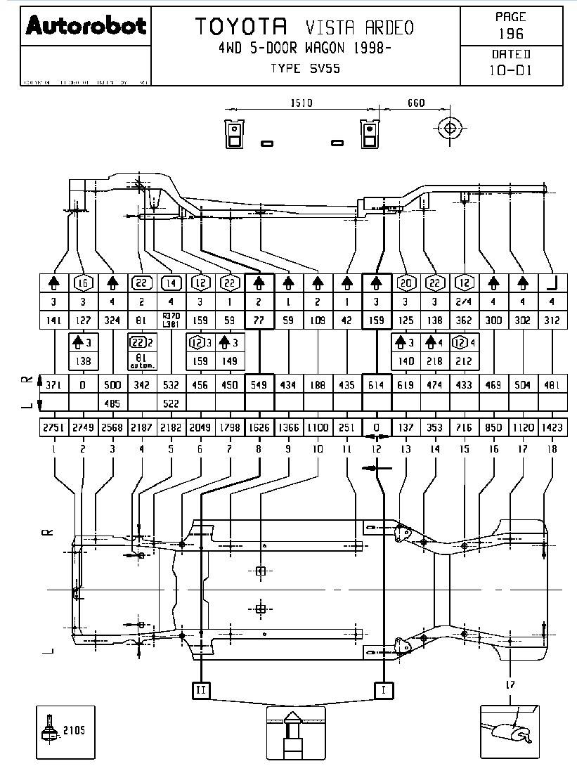 Геометрия кузова VISTA ARDEO из базы данных стапеля для восстановления геометрии кузова Autorobot.