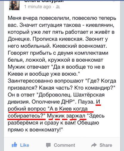 И про мужика который воюет тоже улыбнуло,скоро придут это точно.