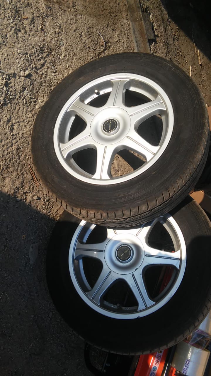 5. Колеса 4шт: Шины BridgeStone Plaze 195/55R15 летние. диски литые мазда R15, сверловка 4x100, Год выпуска 2013. Остаток 90%. Накачены, отбалансированы - 14000р.