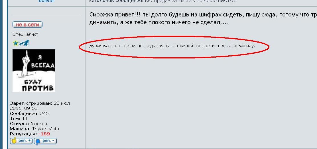 Зарегистрирован: 23 июл 2011, 07:53 Сообщения: 245 Тем: 9 Откуда: Москва Машина: Toyota Vista Репутация: -204 |