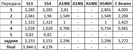 1а Подавляющее большинство коробок серии s наверное даже все, за исключением одной. Различаются между собой главной парой и передаточными числами. Маленькая табличка, постоянно дополняется: