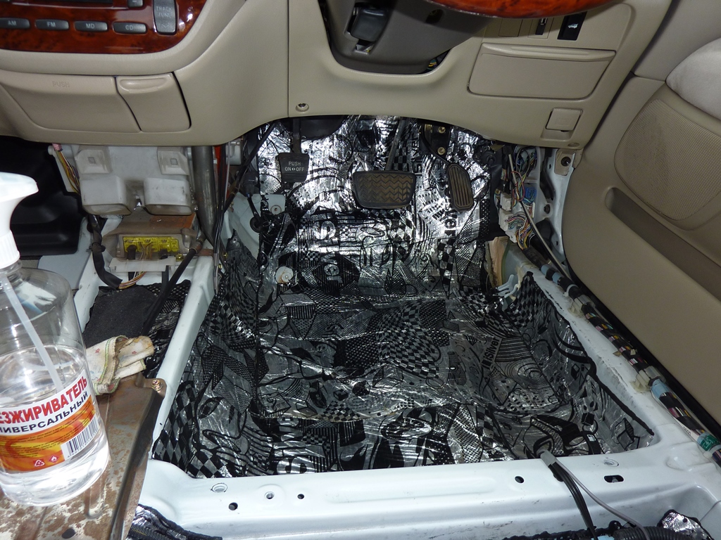 Переходим ко второму слою - шумоизоляции. Я использовал Акцент. На самый низ (под ноги) 15 мм, на другие места 10 мм. Но на самом деле, толще 10 мм лучше не клеить. А тем, у кого дорестайл, советую ограничиться вообще пятью миллиметрами. Вложение: