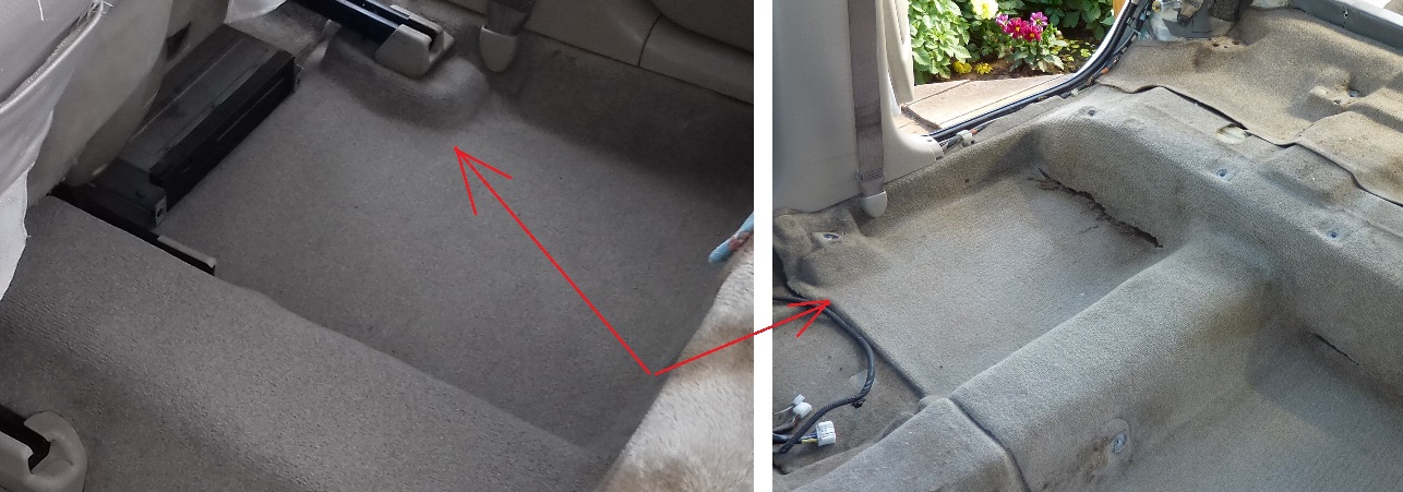 На рестайле к ковролину всего лишь приклеена теплошумоизоляция (что-то вроде войлока), плюс дополнительная подложка на пол. На дорестайле же ковер представляет собой массивную литую конструкцию из ковролина и чего-то похожего на вспененную резину. Выглядит впечатляюще. Подложку пришлось отрезать, часть её осталась под передним ковром. Вложение: