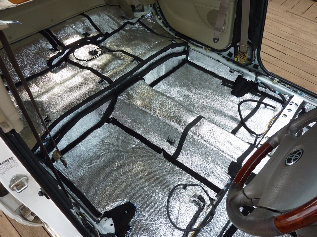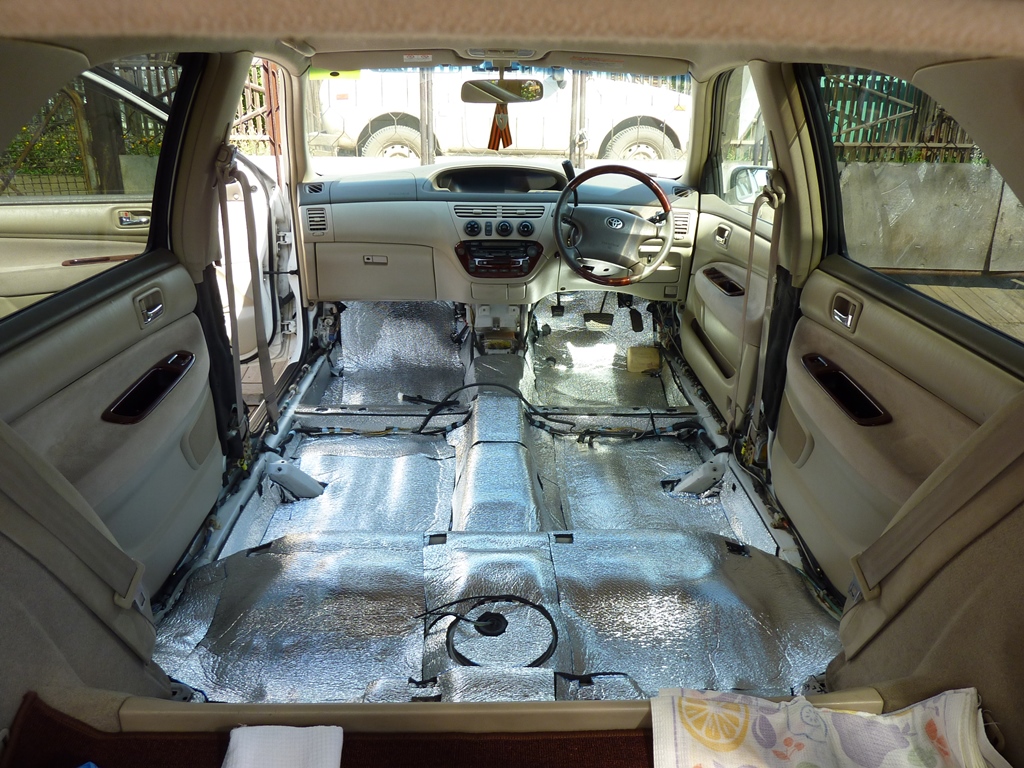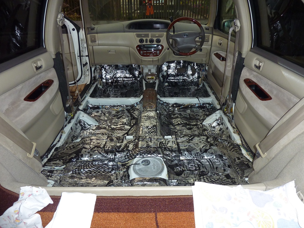 Переходим ко второму слою - шумоизоляции. Я использовал Акцент. На самый низ (под ноги) 15 мм, на другие места 10 мм. Но на самом деле, толще 10 мм лучше не клеить. А тем, у кого дорестайл, советую ограничиться вообще пятью миллиметрами. Вложение: