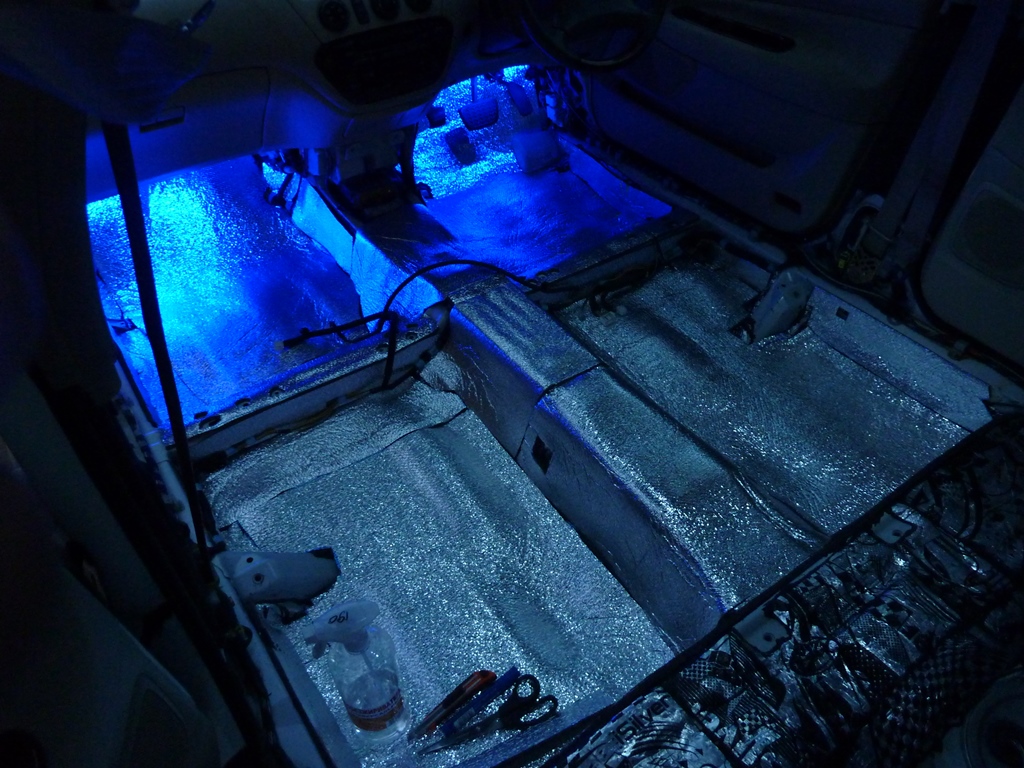 Немного отвлекусь. Когда снял старый ковролин, под ним, под ногами пассажира, сидящего за водителем, была влага. Видимо, зимой снег с обуви таял и вода попадала под ковер, а высохнуть ей там нет никакой возможности. Мне-то ладно, весь пол заклеен фольгированным вибропластом (вообще i-silver, но это, в принципе, одно и то же), кузову эта влага, по большому счету, до лампочки (хотя, в любом случае, ездить так нельзя). А вот у кого голый кузов и порванный ковролин, стоит на эту тему задуматься. Можно просто сунуть пальцы в щель и проверить, есть ли под ним влага (а может и вода). * * * * * * * * * * * * * * * * * Итак, всё собрал, поставил на место сидения. Вложение: