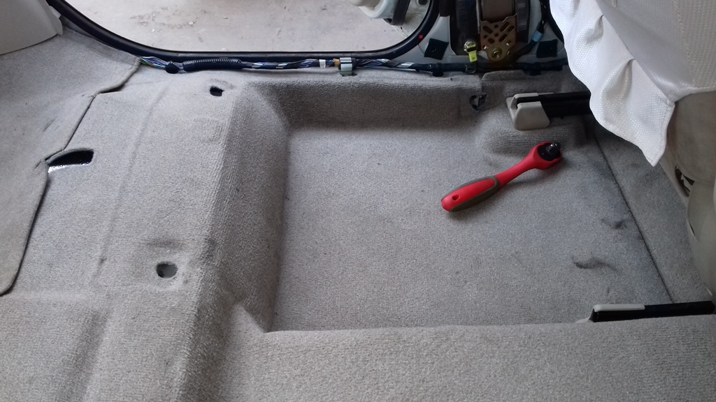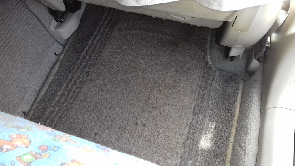 31.05.2018Замена заднего ковролина.Эту висту я купил в тринадцатом году. Ковер под ногами задних пассажиров уже был порван. Всё собирался заказать контрактный, но как-то не складывалось. А тут одному из продавцов на форуме (Илья, привет!) пришел очередной распил, как раз со светлым салоном. Ну я и купил. Одна деталь: у меня рестайл, а ковер от дорестайла. Я знал, что на дорестайлах ковролин прочнее ввиду своей конструкции, но не знал, что немного отличается по форме. Итак, вот такой был у меня пол.  Вложение: