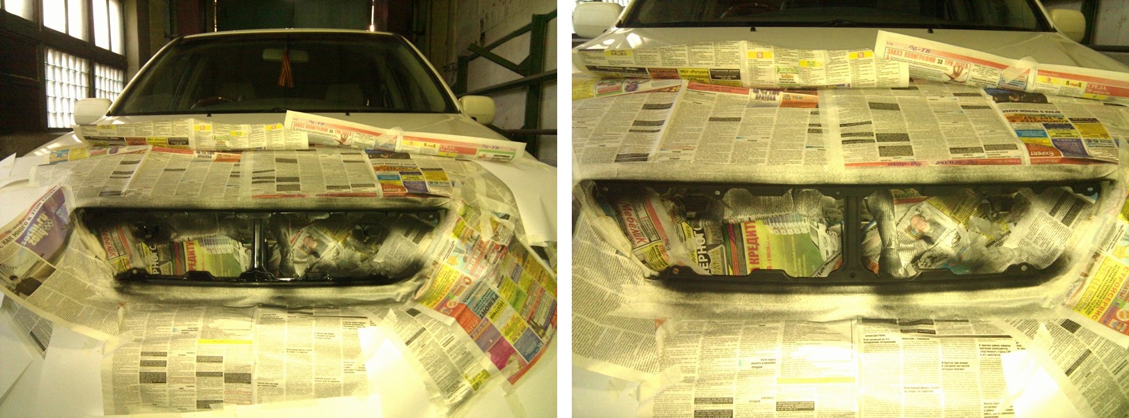 Решил это дело исправить. Подсказку, естественно, увидел на форуме. Купил краску, малярный скотч и прихватил газету. Почистил окрашиваемые части и аккуратно обклеил контуры малярным скотчем. Остальное закрыл листами газеты. Вложение: