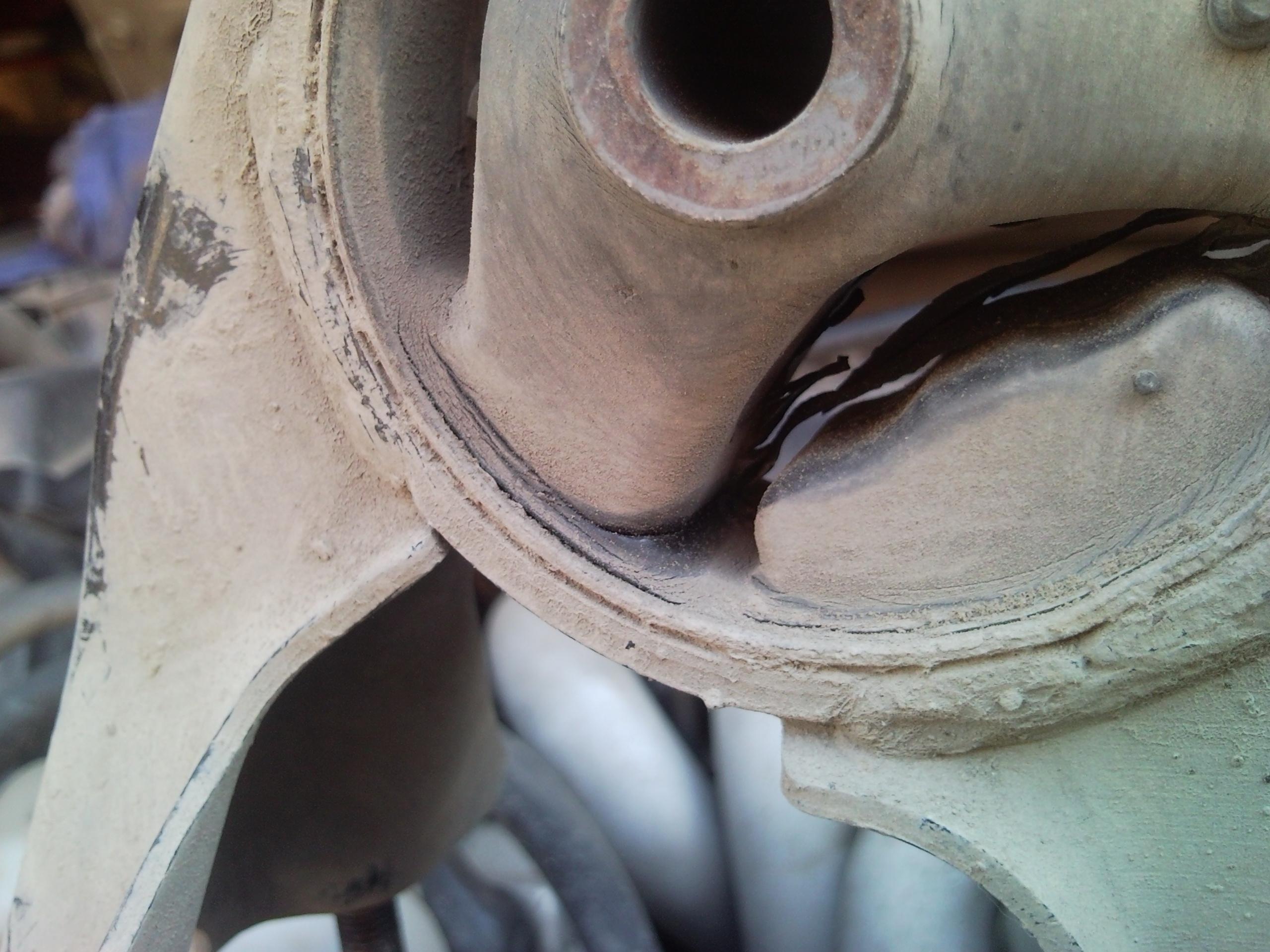 - и вот задняя подушка тоже у нас в руках )))...она оказалась не порванная, но довольно порепанная...еще при установке новой подушке пришлось где-то на сантиметр еще поднимать двигатель, т.к. старая подушка похоже просела...коды на картриджах сошлись, цифры возле треугольника были такие - на старой цифра М4, а на новой М1...