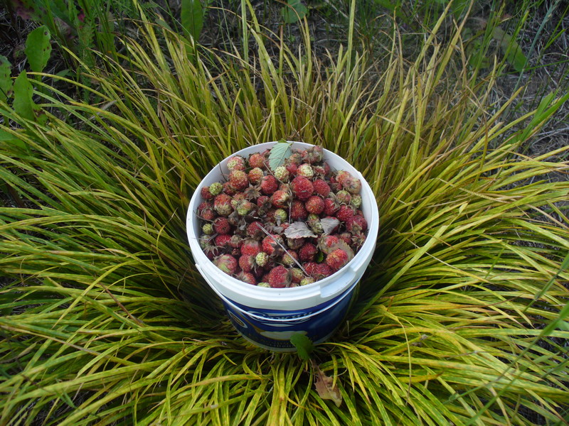 Тесть свозил в лес, нарвали землянички на варенье.