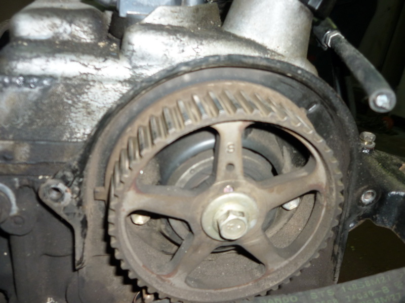 Внимание: фотка развёрнута на 90 градусов. Метка на шестерне и отлив на корпусе находятся в нижней точке двигателя.