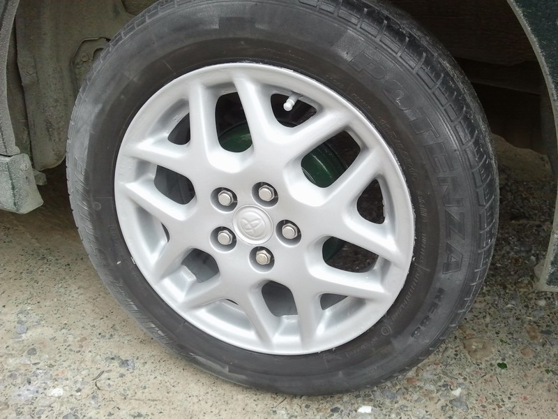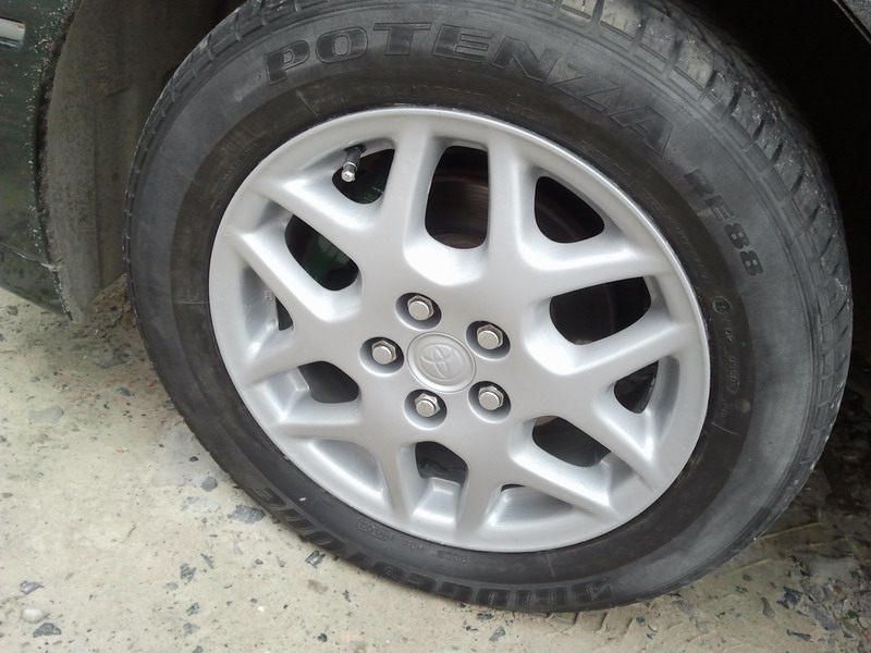 Как только купил второй комплект дисков и обул их в зимнюю резину, сразу снял свои старые облезлые диски с летними шинами, поставил зимнюю резину что бы без машины на неделю не оставаться и покрасил старые диски, первый раз между прочем попробовал в жизни, долго собирался....: