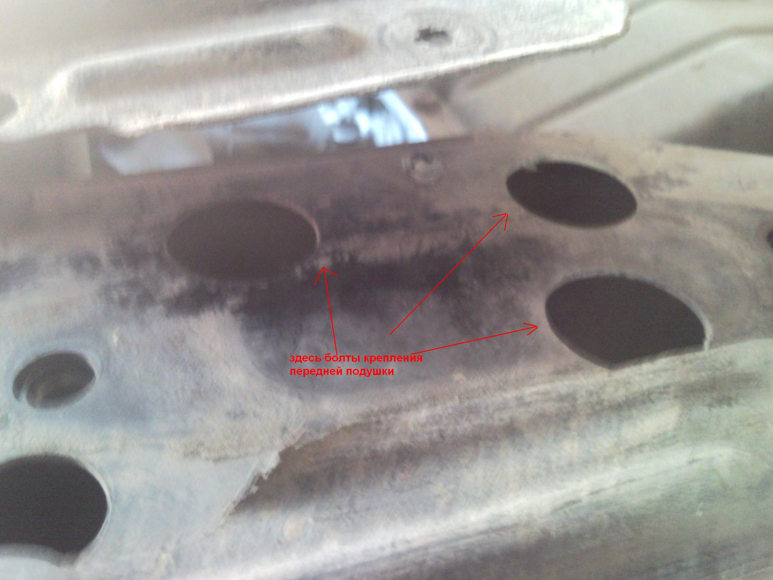 а) не надо откручивать защитную пластинку справа от подушки - болт крепления двигателя к подушке вворачивается прямо в приваренную к скобе гайку...а эта пластинка просто прикрывает эту гайку и именно из-за этого я не знал, что она приварена