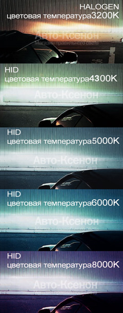 Цветовая температура ксенона - это характеристика источника света, определяет ощущаемый глазом цвет. Каждому цвету соответствует своя температура, измеряемая в Кельвинах. Глаз человека лучше всего видит при дневном свете.