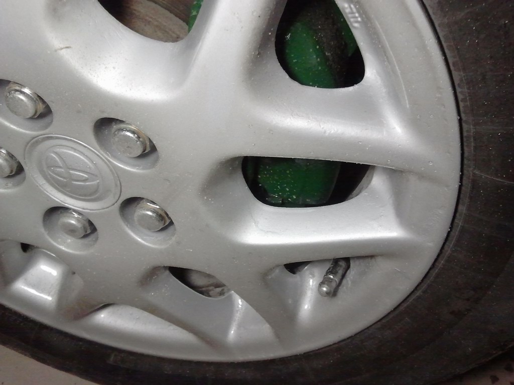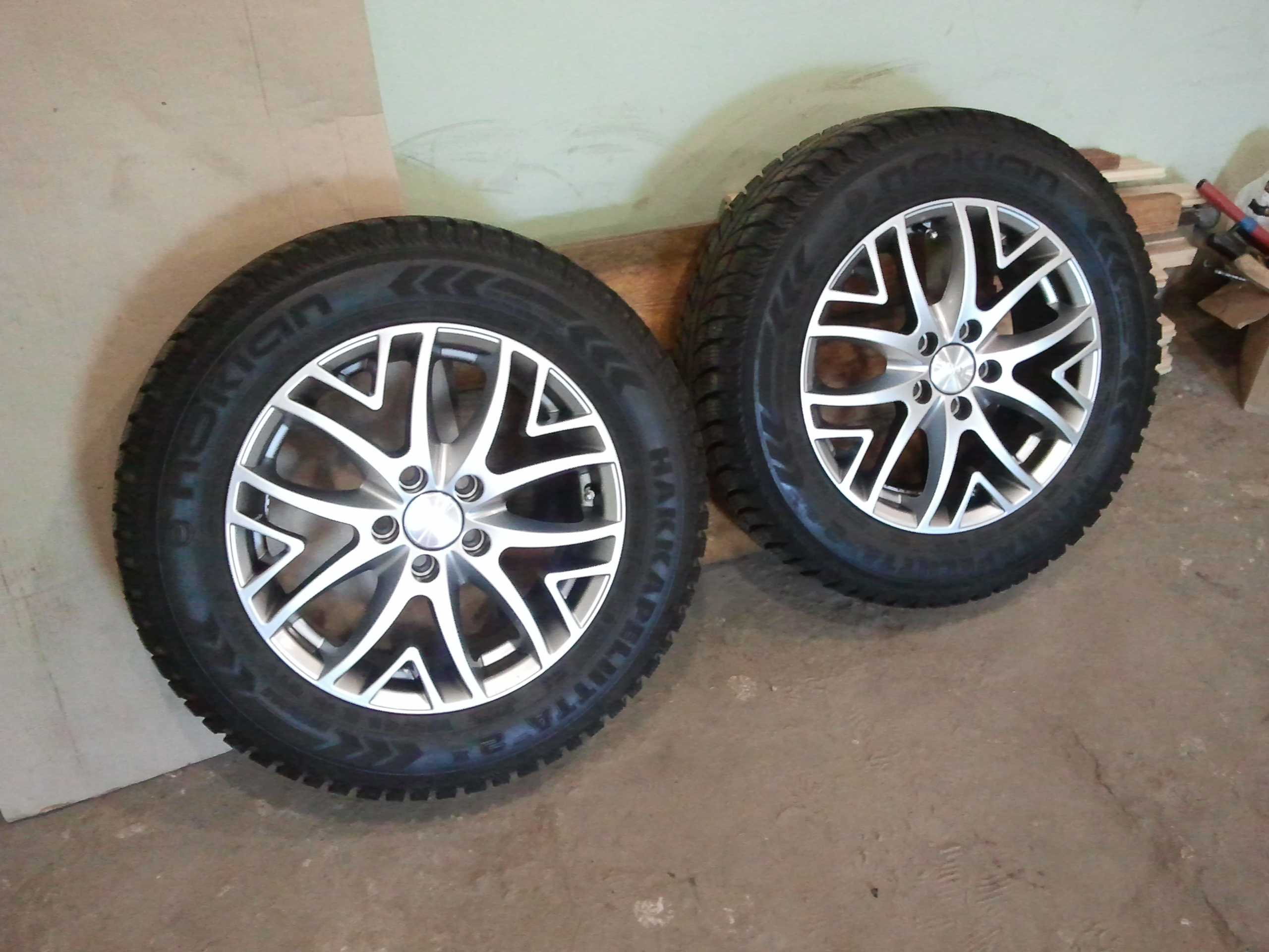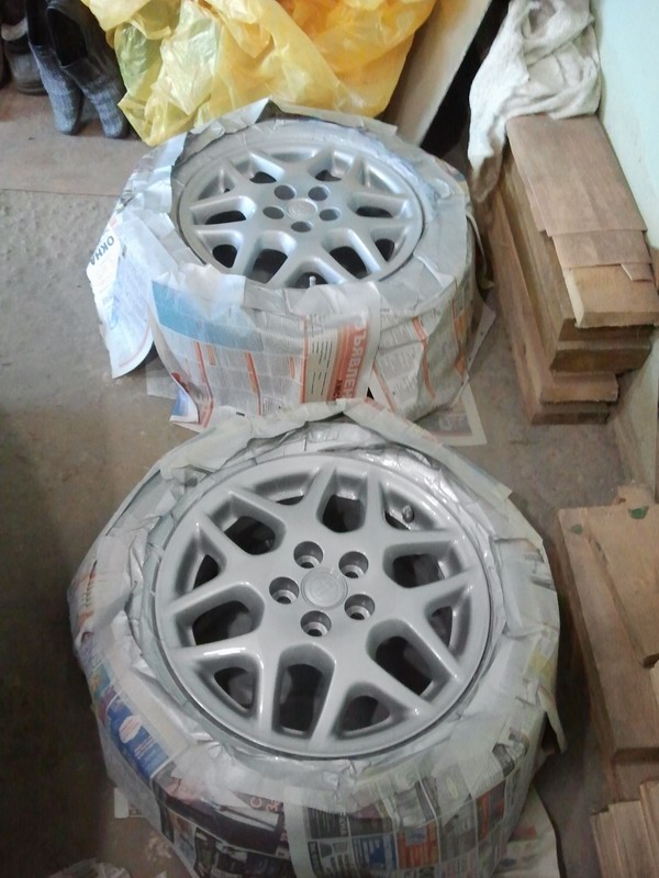 Как только купил второй комплект дисков и обул их в зимнюю резину, сразу снял свои старые облезлые диски с летними шинами, поставил зимнюю резину что бы без машины на неделю не оставаться и покрасил старые диски, первый раз между прочем попробовал в жизни, долго собирался....: