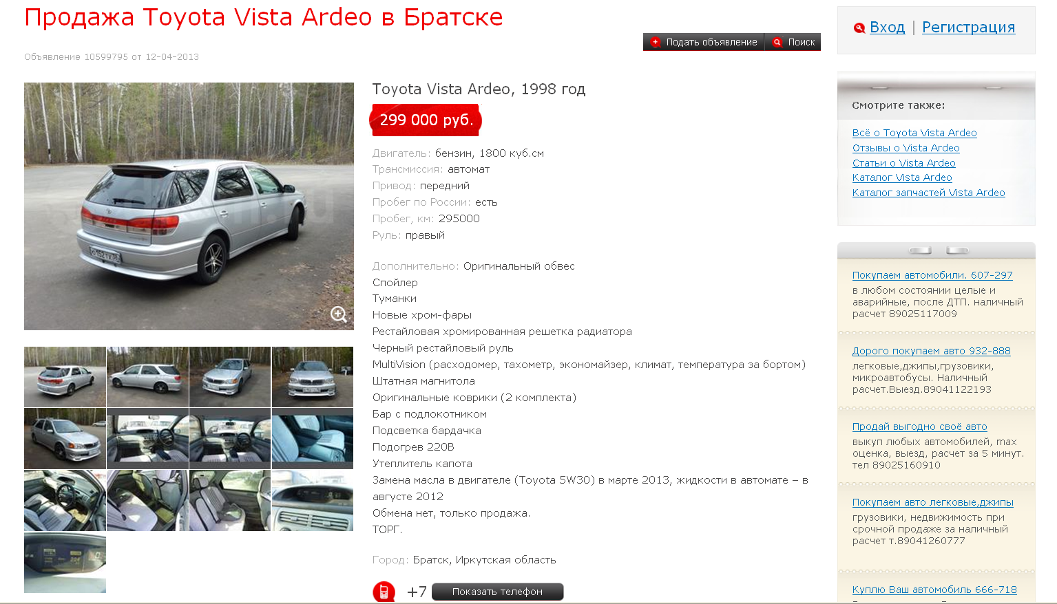 Зарегистрирован: 08 мар 2013, 22:15 Сообщения: 154 Тем: 5 Откуда: Братск Машина: Toyota Vista Ardeo О машине: SV55, 3S Репутация: 0 |